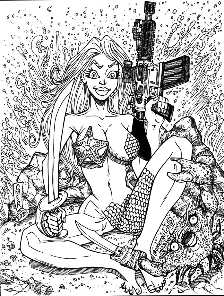Inks, Semi-Chibi/Super Deformed Style inspired by Kim Jung Gi from his little military men series of sketches.